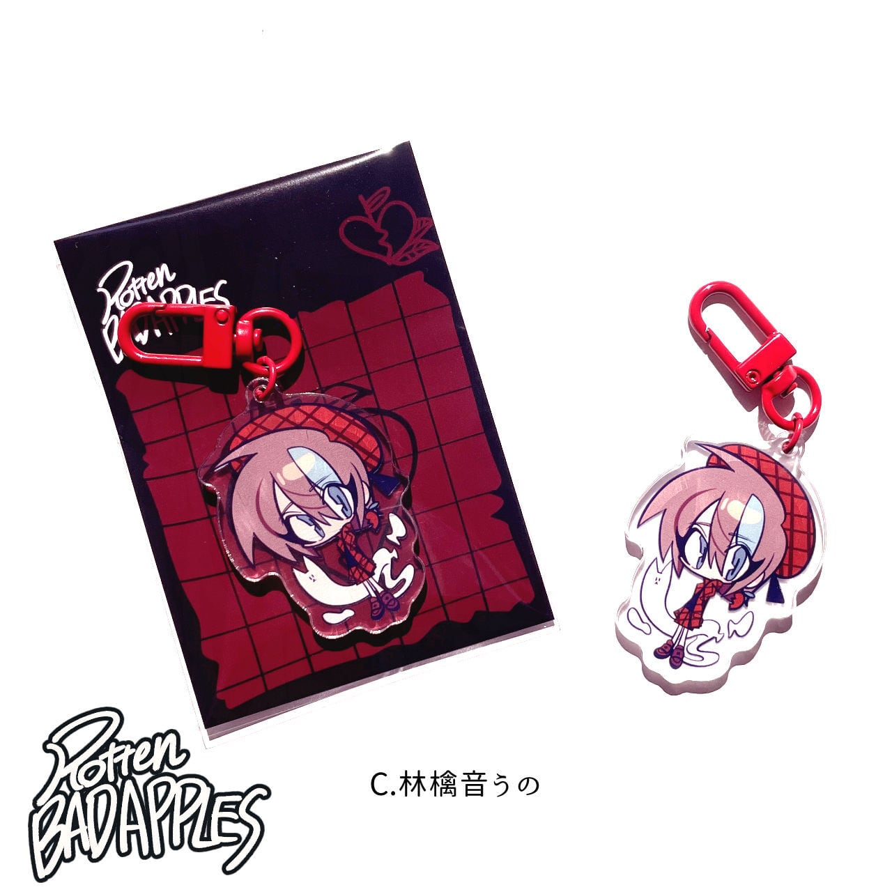 赤いナスカンがシックな、50mmアクリルキーホルダーです☆
