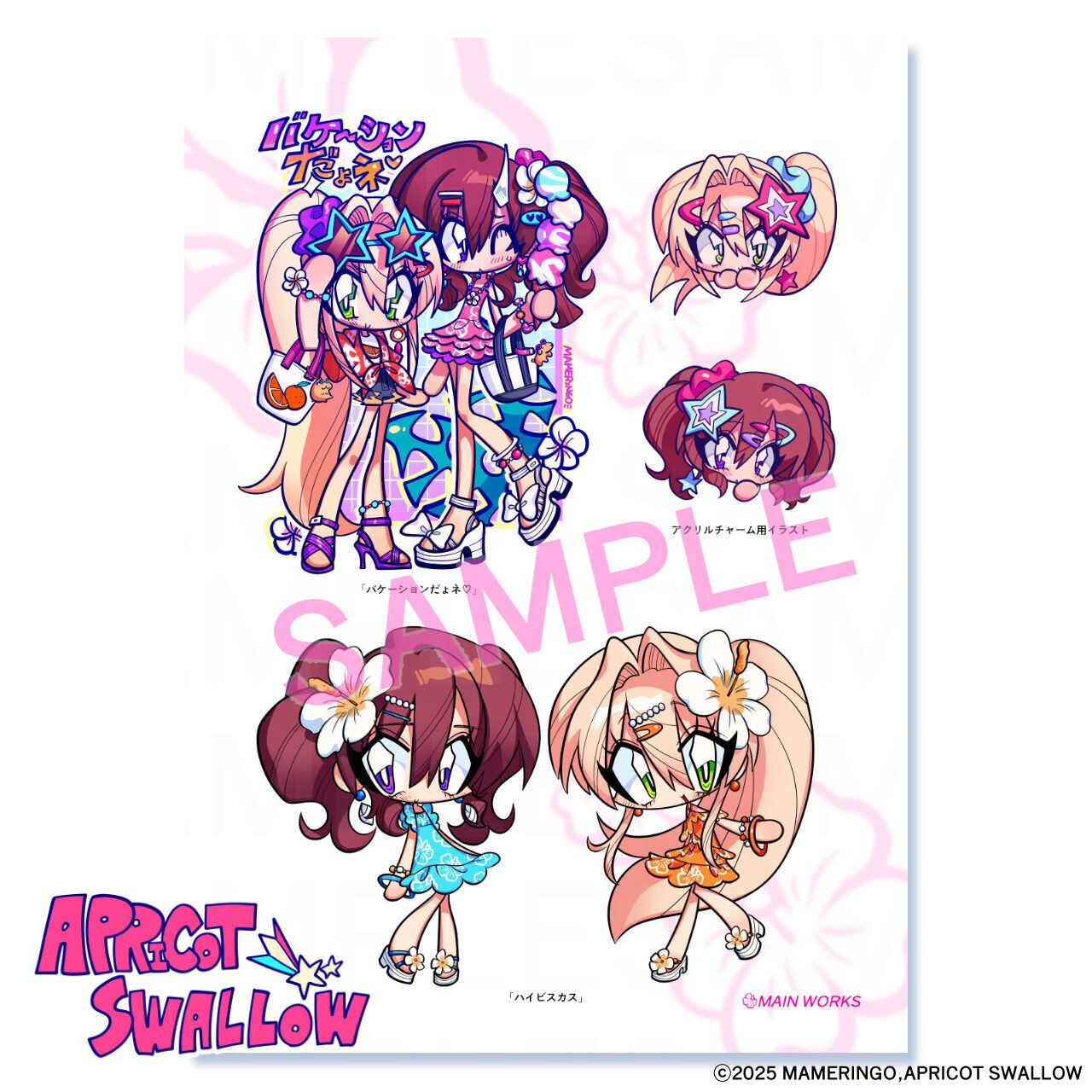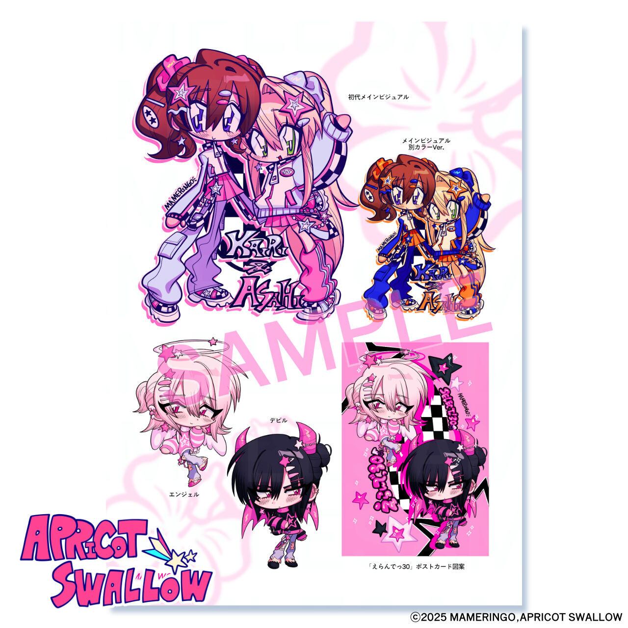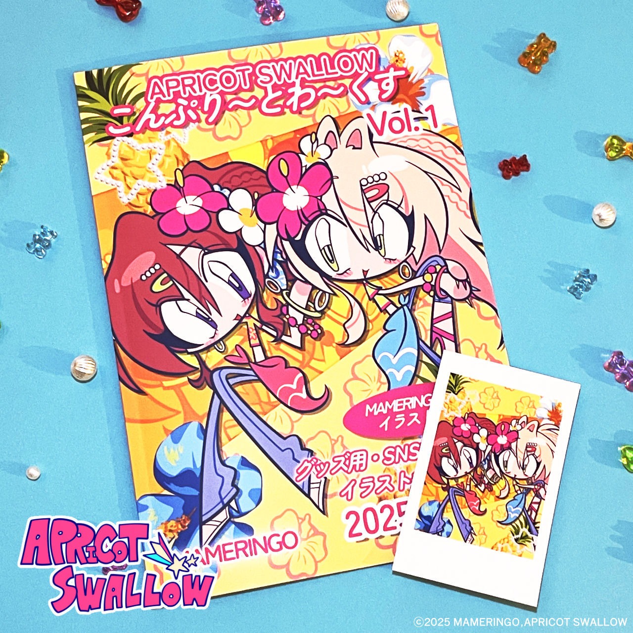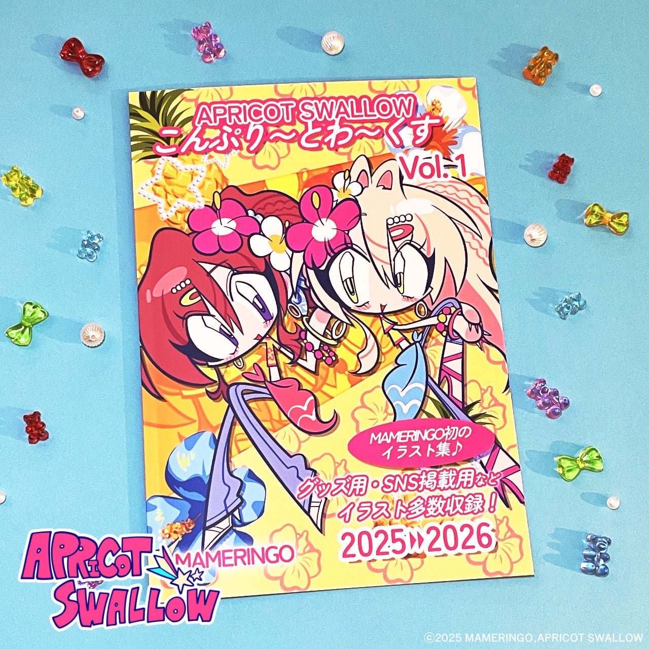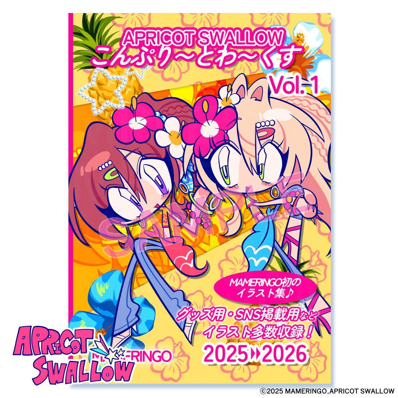 2025年6月のAPRICOT SWALLOW活動開始から、2026年3月までに発売したグッズのイラスト、WEBにて掲載したイラストなど多数のイラストを収録しています☆